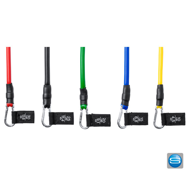 11-teiliges Übungsband-Set in Tragetasche mit Ihrem Logo bedrucken