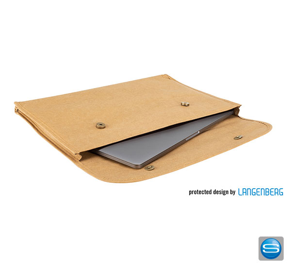 15,6" Laptophülle aus waschbaren Jeans-Papier als Werbegeschenk mit Logodruck