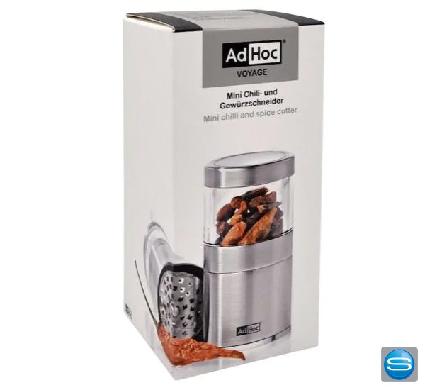 Mini Chili- und Gewürzschneider der Marke AdHoc. Der kompakte Chili- und Gewürzschneider hat ein original AdHoc SchneidWerk® und wurde mit dem #FORM Designpreis ausgezeichnet. Lieferung ohne Erstbestückung und abgebildete Dekorationsartikel. Natürlich kann der Gewürzschneider auch mit Ihrem Firmenlogo versehen werden. Das macht ihn zu einem einzigartigen Werbegeschenk für Ihre Kunden oder Mitarbeiter.