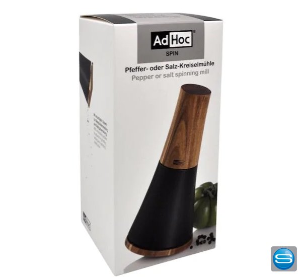 AdHoc Pfeffer- oder Salz-Kreiselmühle Spin. Die hochwertige und innovative Kreiselmühle hat ein Hochleistungs-Ceramic Mahlwerk mit einer stufenlosen Mahlgradeinstellung und einer Einstellscheibe für krümelfreies Würzen. Liefreung ohne Erstbestückung und abgebildete Dekorationsartikel. Die Mühle kann selbstverständlich ganz nach Ihren Vorstellungen mit Ihrem Logo versehen werden, was die Pfeffer- oder Salzmühle zu einem idealen Werbeartikel für die Gastronomie oder Hotellerie macht.