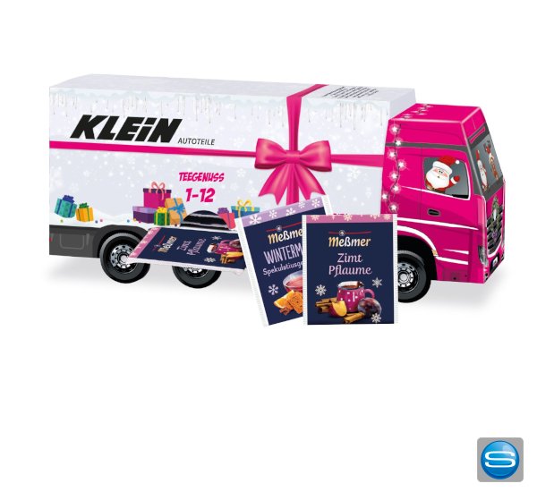 Adventskalender Tee-LKW als Werbeartikel mit Logo