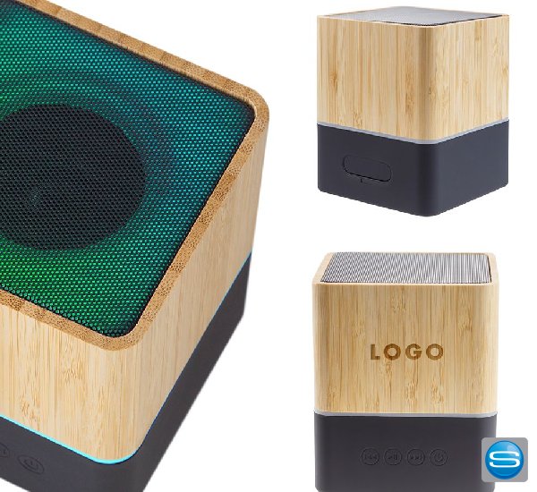 Der kabellose Bambuslautsprecher mit 5 Watt Output sorgt für optimale, mobile Klangqualität. Das Design kombiniert Bambus und Silikon. Durch eine raffinierte Farbwechsel-LED im Lichtband und an der Membran sorgt der Lautsprecher auch optisch für gute Stimmung. Die Musikbox besitzt einen Typ-C Anschluss zum Wiederaufladen des Akkus sowie zusätzliche Wiedergabemöglichkeiten über eine Micro-SD Karte. Selbstverständlich kann der Lautsprecher individuell mit Ihrem Logo versehen werden, was ihn zu einem einzigartigen Werbeartikel für Ihre Firma macht.