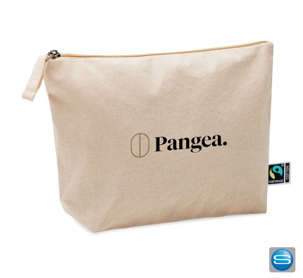 Schlichte Kosmetiktasche aus Fairtrade-Baumwolle. Die Tasche kann auf beiden Seiten mit Ihrem Logo bedruckt werden. Mit diesem Kulturbeutel unterstützen Sie faire Gewinnung der Baumwolle und durch seine schlichte Erscheinung eignet er sich als perfektes Werbemittel für Frauen und Männer.