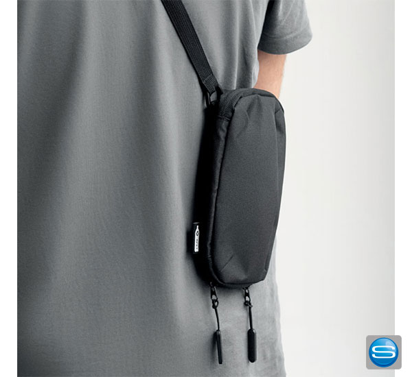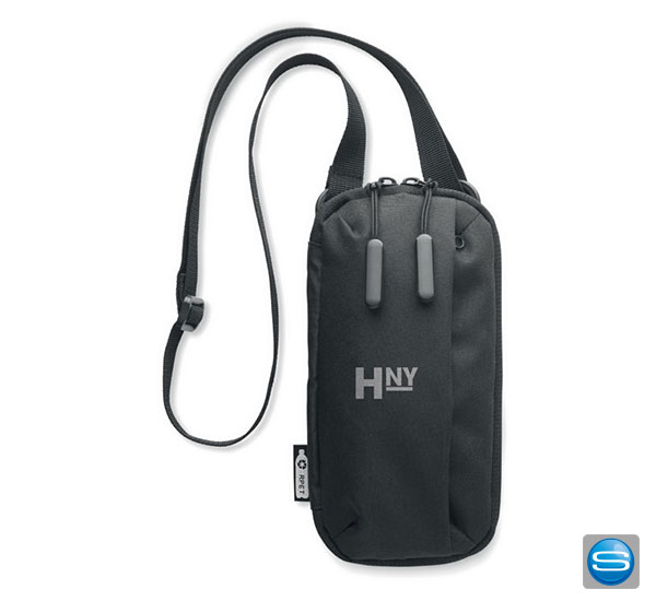 Die universelle Crossbody-Smartphone-Tasche ist aus 300D RPET-Polyester mit verstellbarem Gurt. Die Tasche inkludiert eine Front- und Seitentasche mit Reißverschluss. Das Hauptfach ist mit mehreren Fächern ausgestattet. Ihr Firmenlogo wird mittels Druck auf der Vorder- oder Rückseite der Werbetasche angebracht.