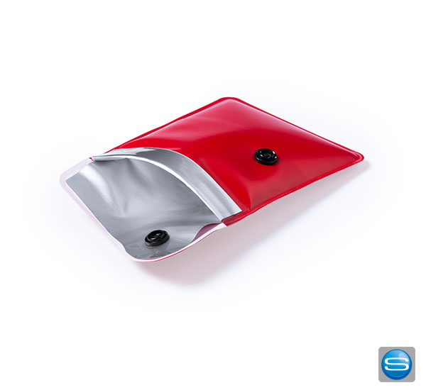 Der Taschen-Aschenbecher in lebendigen Farben und Umschlagklappe mit Druckknopf, lässt sich individuell veredeln. Das Interieur ist aus schwer entflammbarem Aluminium. Ihr Firmenzeichen wird mittels Siebdruck auf dem Werbeträger angebracht.