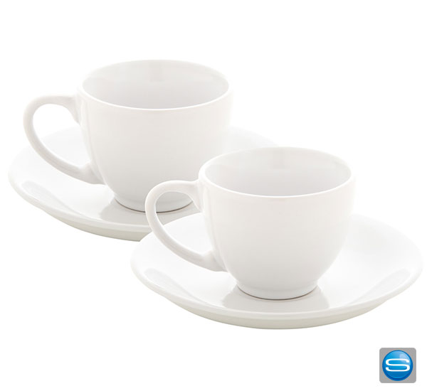 Das bedruckbare Espressoset ist aus Keramik: 2 Tassen und 2 Untertassen, Füllmengeninhalt: 90 ml. Im Lieferumfang enthalten ist eine weiße Schachtel. Ihr Firmenzeichen wird mittels Keramikdruck (max. 30mm x 20mm) auf dem Werbeträger angebracht.