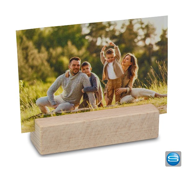 In dem hochwertigen Bildhalter aus Holz lassen sich ein Foto Ihrer Liebsten, Bilder oder auch dekorative Sprüche-Karten perfekt in Szene setzen. Die Werbebotschaft kann individuell auf der Banderole angebracht werden. Die Lasergravur auf dem Holz stellt eine langlebige Verbindung zu dem Unternehmen her.