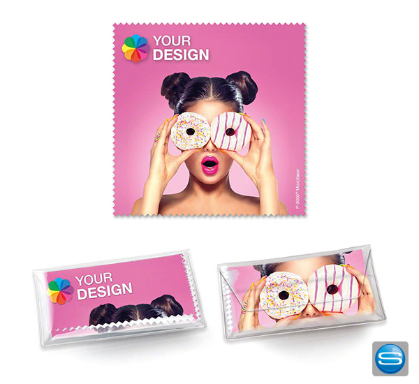 Mit diesem Brillenputztuch, im praktischen Etui verpackt, können Sie Ihre Echt- und Kunststoffgläser streifenfrei reinigen. Das Giveaway ist in vielen verschiedenen Formaten erhältlich und kann nicht nur für Brillen genutzt werden, sondern auch für Displays, DVDs/CDs oder DigiCams. Ihr Motiv kann vollflächig auf die Vorderseite bedruckt werden.