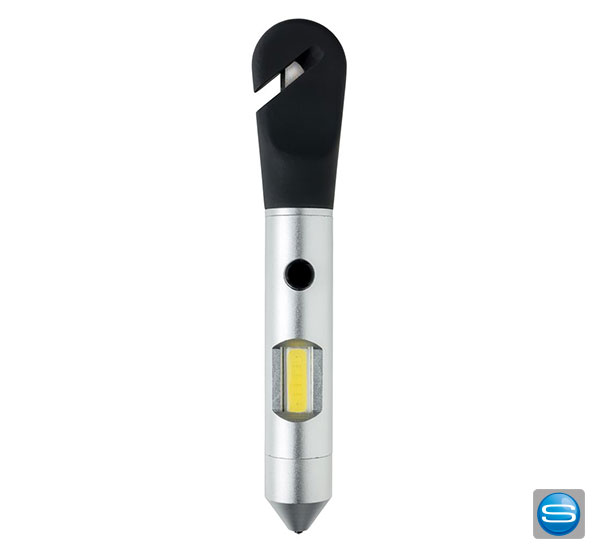 Nach Ihren Wünschen veredelbares Multifunktions Tool mit COB Lampe, einem Notfallhammer, Gurtschneider und einem Magneten. Das Licht kann des weiteren als Notfalllicht benutzt werden, welches mit Hilfe des Magneten leicht am Auto befestigt werden kann. Der Notfallhammer und der Scheibeneinschläger des individuell bedruckbaren Tools kann im Falle eines Unfalls benutzt werden, um aus dem Auto zu entkommen. Seien Sie auf der sicheren Seite mit dem 4 in 1 COB Tool als Werbegeschenk. Inklusive 4 Batterien für den direkten Gebrauch.