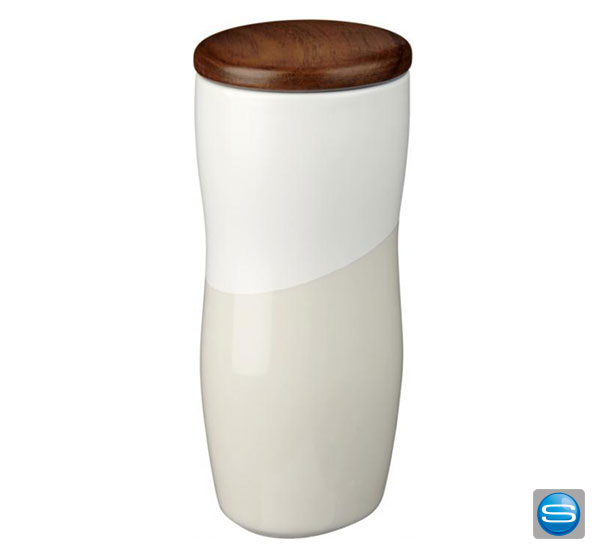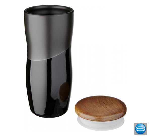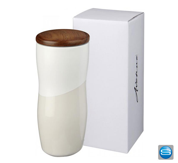 Wir bieten Ihenen einen doppelwandigen Keramikbecher mit matten und glänzendem Kontrastdesign an. Außerdem verhindert diese Konstruktion Kondenswasser auf der Außenseite des Werbeartikels. Ausgestattet ist der Keramikbecher mit einen aufsteckbaren Holzdeckel, welchen wir mit einer Lasergravur von Ihrem Logo veredeln können. Das Fassungsvolumen beträgt 370 ml. Geliefert wird der personalisierte, individuelle Becher in einer Avenue-Geschenkschachtel. Verbreiten Sie Ihre Werbebotschagt mit einem To-Go-Reno doppelwanigen Keramikbecher.