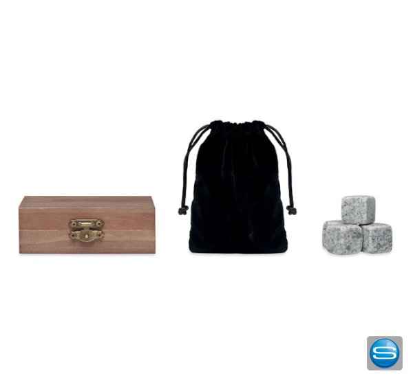 | Material: | Kiefernholzbox, Eiswürfel aus Stein, Samtbeutel |