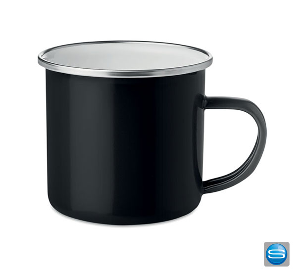 Emaillierter Metall-Becher als Werbegeschenk mit Logo bedrucken