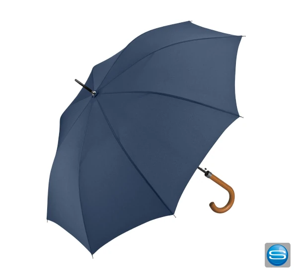 Der klassische bedruckbare AC Stockschirm von Fare mit Werbung bedruckt - ein spitzen Werbegeschenk. Der AC Stockschirm hat einen 10 mm Stahlstock, ein schwarz galvanisiertes Gestell mit Fiberglasschienen zur besseren Stabilität, geflammte Holz-Rundhakengriff mit Griffring und schwarze Nickelspitzen. Bedruckte Regenschirme sind immer ein toller Werbeträger.