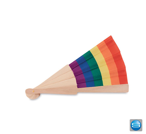 Fächer in Regenbogenfarben als Give Away mit Logo