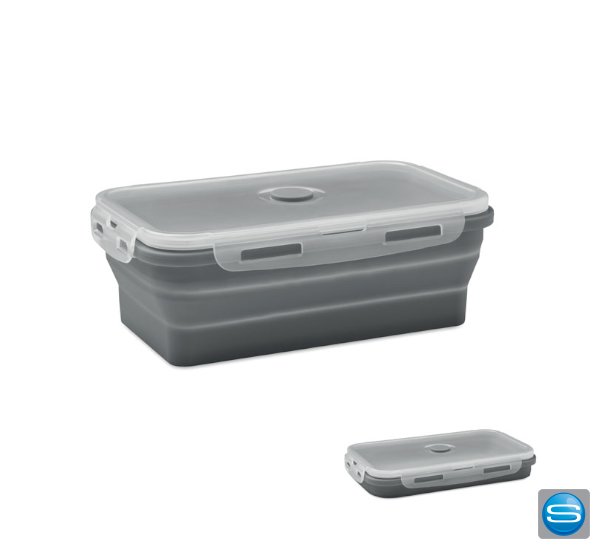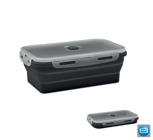 Faltbare Lunchbox aus hochwertigem Silikon (1200 ml). Platzsparendes Design – ideal für unterwegs. PP-Deckel mit Silikonventil für Frische und auslaufsicheren Transport. Perfekt für Arbeit, Schule, Reisen & Outdoor-Abenteuer. Individuell bedruckbar – praktisches und nachhaltiges Werbegeschenk.
