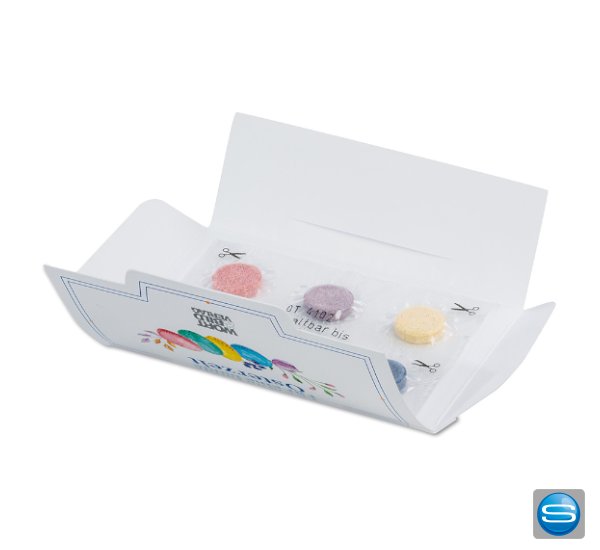 Bunte Osterzeit mit diesem Werbeartikel zum Eierfärben und Ihrem persönlichen Logo! Das Briefchen mit 5 Farbtabletten eignet sich als kreatives Giveaway für Ihre Kunden und kann bereits ab 250 Stück ganz individuell gestaltet werden. Verschenken Sie einmal nicht die übliche Schokolade, sondern punkten Sie mit dieser Osterfarbpalette, bedruckt mit Ihrer Werbebotschaft.