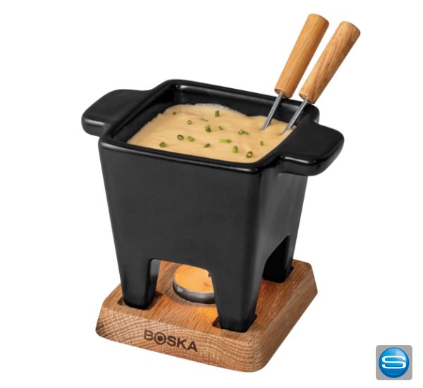 Dieses kleine Fondue-Set in einzigartiger Form ist perfekt für einen intimen Abend zu zweit. Mit dem Tapas Fondue können 175 Gramm Käsefondue oder 200ml warme Sauce zubereitet werden. Die Fonduepfanne ist spülmaschinenfest