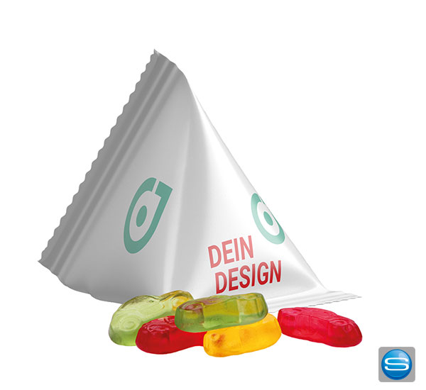 Fruchtgummi von Trolli im bedruckten Tetraeder
