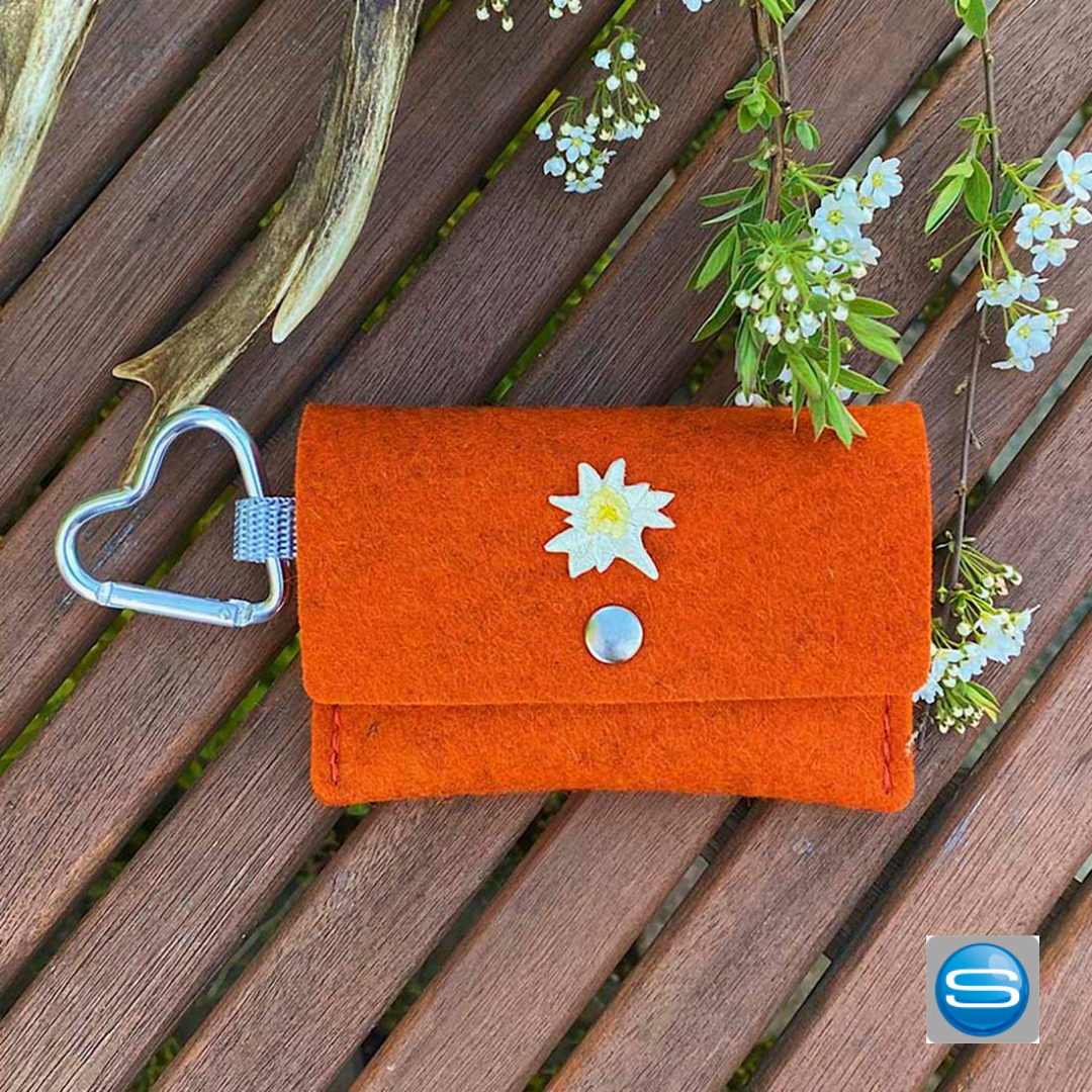 Perfekt für das Oktoberfest oder ein Volksfest. Der kleine Geldbeutel Diridari ist wahlweise aus Recyclingfilz oder Naturwollfilz hergestellt und verstaut sicher Ihr Geld. Dank des praktischen Herzkarabiners kann er direkt an der Tasche oder am Gürtel festgemacht werden. Mit dem Druckknopf bleibt der Geldbeutel sicher verschlossen und er kann zusätzlich mit einer Schmuckniete oder einem Stickemblem individualisiert werden.