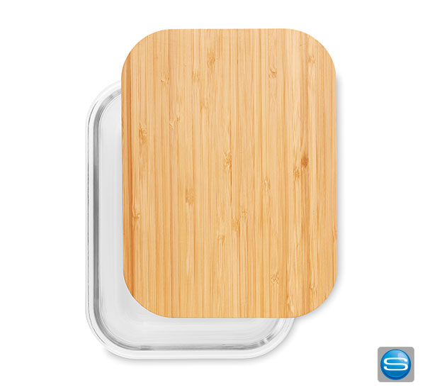 Glasbrotzeitbox mit Deckel aus Bambus mit eigenem Logo veredeln