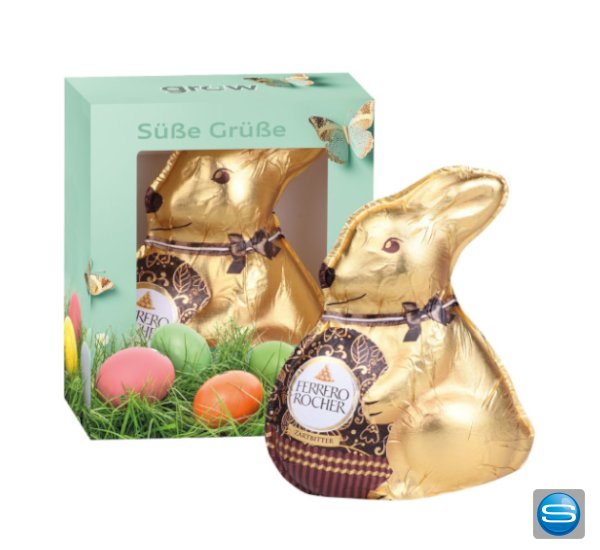 Verschenken Sie Gold an Ostern. Mit dem 60g Osterhasen von Ferrero Rocher und einem von Ihnen designten Werbekarton haben Sie das ideale Ostergeschenk für Mitarbeiter, Kunden oder Geschäftspartner.