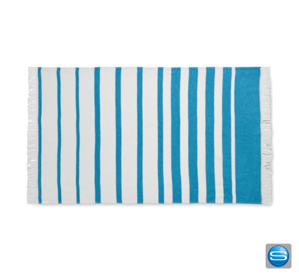 Das Hammam-Handtuch mit zwei verschiedenen Texturen, eine Seite aus Frottee und die andere Seite glatt gewebt. Dadurch wird das Handtuch zu einem perfekten Begleiter am Strand, Pool oder einem Abendteuer im Freien. Eine gute Saugfähigkeit und ein schnelles Trocknen wird Ihnen damit zugesichert. Selbstverständlich lässt sich auf Ihren Wunsch auf dem Produkt Ihr individuelles Motiv anbringen.