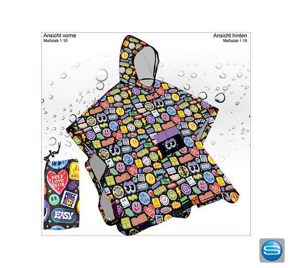 | Werbeanbringung: | Druck direkt auf Poncho, ab 1.500 Stück vollflächige Gestaltung möglich |