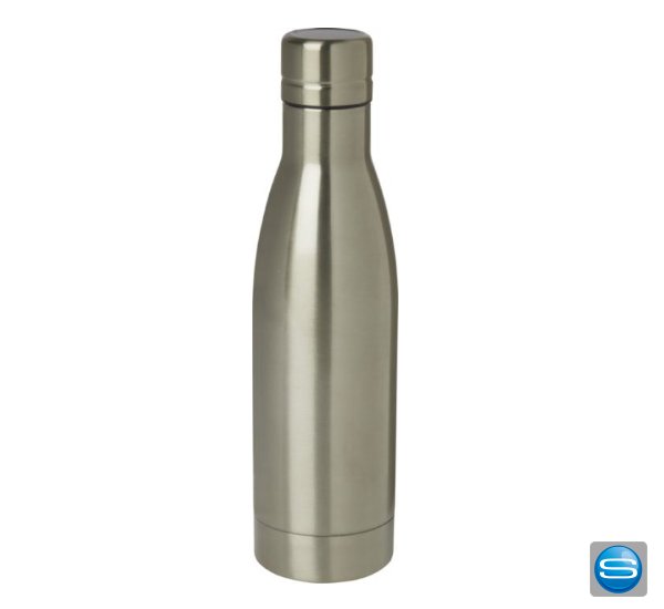 Diese praktische Isolierflasche ist doppelwandig und besteht aus recyceltem Edelstahl. Die Trinkflasche hat eine verkupferte Innenwand und eine Füllmenge bis zu 500 ml. Ihr eigener Unternehmensslogan oder Ihr Firmenlogo kann auf der Vorder- oder Rückseite der Flasche, seitlich oder rundum aufgedruckt oder eingraviert werden. Schenken Sie Ihren Kunden Werbemittel, die in Erinnerung bleiben.