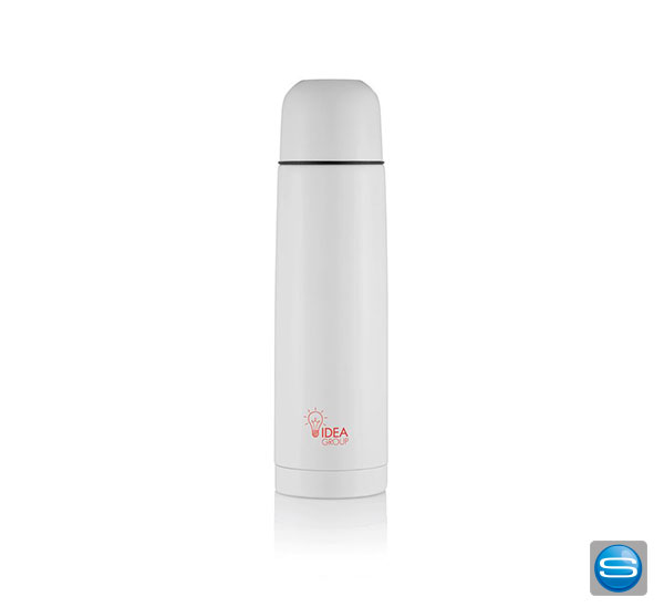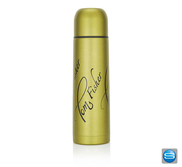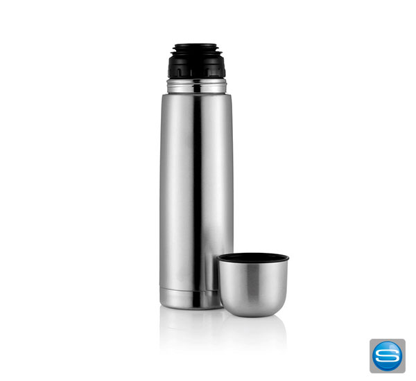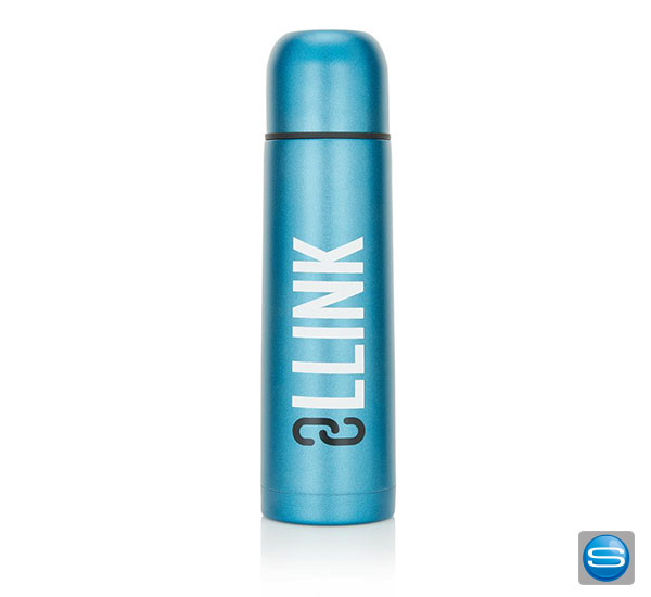 Diese Isolierflasche besteht aus Edelstahl und ist doppelwandig sowie vakuumisoliert. Die Flasche hat einen Druckverschluss sowie eine Tasse. Veredelt werden kann dieses praktische Werbegeschenk durch viele verschiedene Arten z. B. durch Tampondruck (max. 30 x 80 mm), einem rundum Siebdruck (max. 200 x 100 mm), einem rundum Digitaldruck (max. 212 x 174 mm) oder einer Lasergravur (max. 30 x 100 mm). Auf der nächsten Messe oder dem nächsten Event werden Sie mit dieser Isolierflasche als Werbeträger sicherlich gut bei Ihren Kunden ankommen.