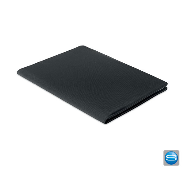 Die bedruckbare Mappe im DIN A4-Format, ist aus 2tone 300D-RPET. Die Mappe verfügt über diverse Innenfächer und eine Schlaufe zur Aufbewahrung von Stiften. Sie bietet außerdem einen linierten Notizblock mit 20 Blatt. Ihr Firmenlogo wird mittels Siebdruck, Transfer Siebdruck oder Digitalertransferdruck angebracht.