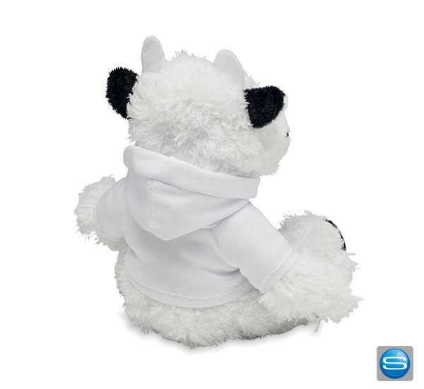 Die Kuh aus Plüsch mit Kapuzenpulli lässt sich individuell getsalten. Ihr Firmenlogo wird mittels Transfer Siebdruck, Digitalertransferdruck oder Sublimationstransfer auf dem Pulli angebracht. Ideal für Sublimationsdruck (fullcolor).