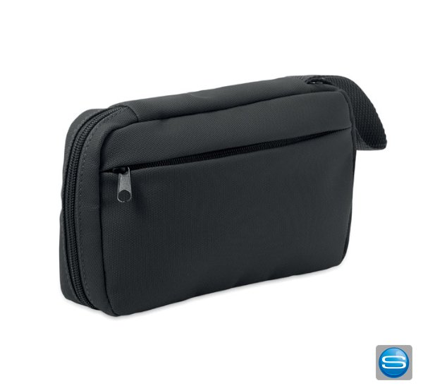 Dieser hochwertige Kulturbeutel aus 600D RPET mit PU-Beschichtung überzeugt durch Strapazierfähigkeit und modernes Design. Das integrierte RPET-Netz sowie das 210D RPET-Innenfutter unterstreichen den nachhaltigen Charakter und sorgen gleichzeitig für Stabilität und Ordnung.