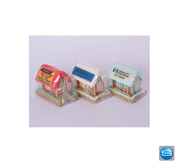 Knusper, knusper, knäuschen..... Süßes, kleines Lebkuchenhäuschen mit Ihrem eigenen Logo auf dem Dach.Lebkuchenhaus als Weihnachtsgeschenk