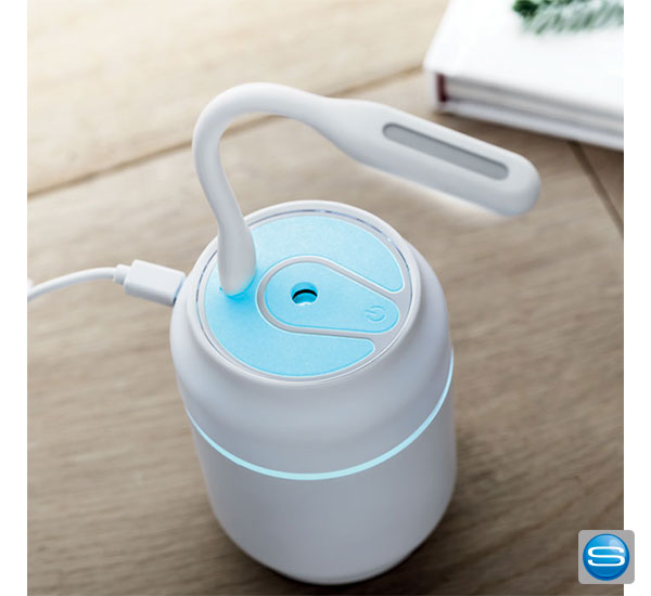 Der bedruckbare 3in1 Luftbefeuchter in Optik einer Dose, ist aus PET. Inkl. Mini-Ventilator und Nachtlicht, mit wechselndem 6 farbigem Stimmungslicht. Ihr Firmenlogo wird mittels Tampondruck oder Digital Label angebracht.