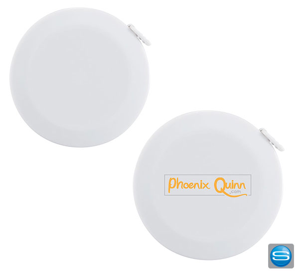 Schneidermaßband mit einer Länge von 1,50m/60inch aus Fiberglas mit Kunststoffgehäuse in weiß und Rückzugknopf. Das Maßband kann in bis zu 5 Farben individuell auf der Rückseite mit Ihrem Logo oder Ihrem Motiv bedruckt werden.