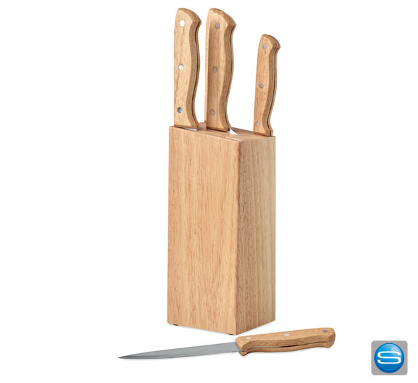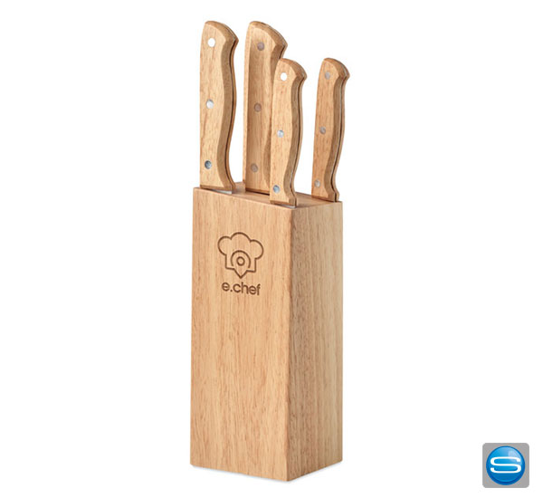 Messerblock aus Holz als Werbemittel mit Logo gravieren
