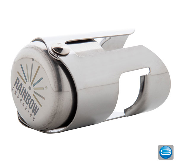 Der edle Flaschenverschluss für Sektflaschen ist aus Metall. Ihr Firmenzeichen wird mittels Gravur auf der Oberseite oder seitlich auf dem Werbeträger angebracht. Produktgröße: ø40×55 mm.