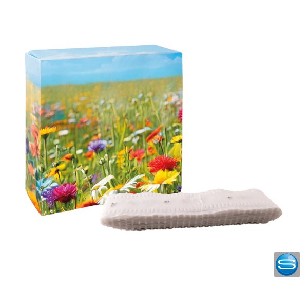 Werbeanbringung: | 45x25 mm auf Standardmotiv Packung oder 125x138 mm eigene Gestaltung Packung |