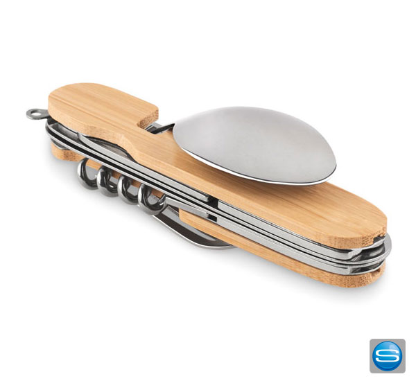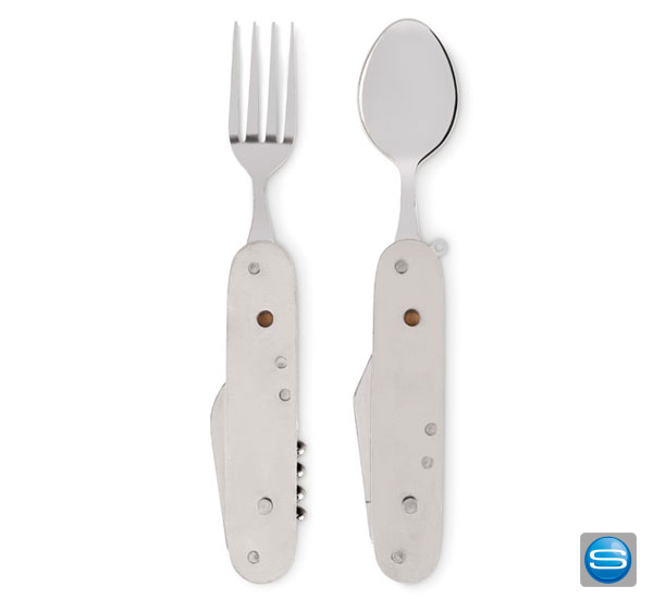 Multifunktionales Campingbesteck aus Metall mit Ihrem Logo veredeln