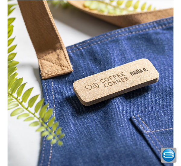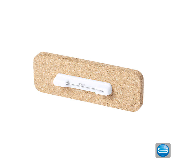 Das individualisierbare Namensschild ist aus Naturkork, um die Verwendung natürlicher Rohstoffe zu fördern und Schadstoffemissionen zu reduzieren. Das Schild bietet einen Sicherheitsverschluss mit Sicherheitsnadel auf der Rückseite. Ihr Firmenlogo, Slogan oder Motiv wird mittel Laser oder Druck mittig angebracht.
