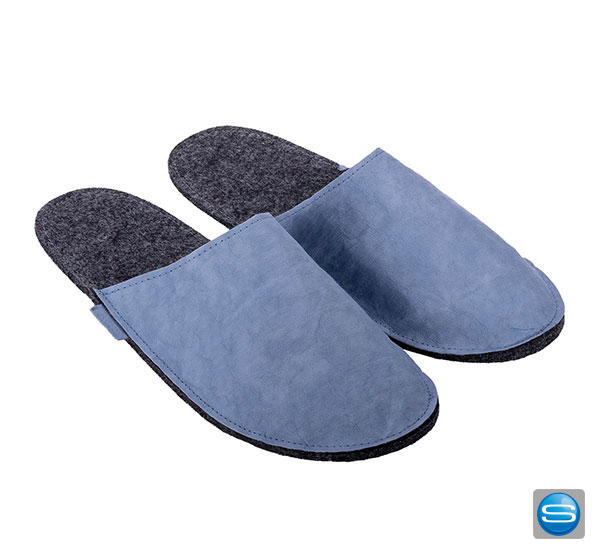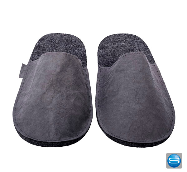 Die nachhaltigen Pantoffeln aus Papyr sind ein echter Hingucker. Die Sohle der Hausschuhe haben eine Antirutschbeschichtung und der Schaft hat eine Filzunterlegung. Die Oberseite ist aus Papyr (washable paper), dessen Farbe Sie gemäß der Farbkarte wählen können. Erhältlich in verschiedenen Schuhgrößen: M = 38/39, L= 40/41, XL = 42/43, XXL = 44/45. Ihr Logo oder Motiv kann auf der Oberseite der Pantoffeln veredelt werden.