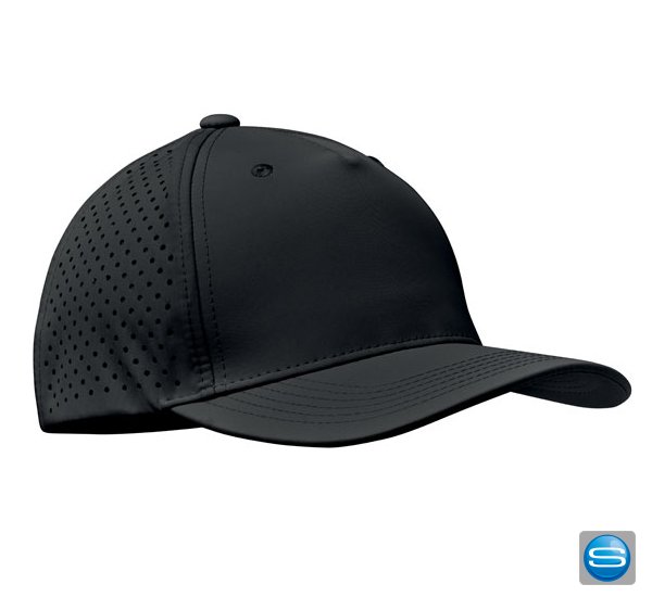 Die Kappe besteht aus leichtem 130 g/m² Polyester und überzeugt durch ihre schnell trocknenden, schweiß- und wasserabweisenden Eigenschaften. Zwei umstickte Ösen sowie lasergeschnittene Belüftungslöcher sorgen für optimale Luftzirkulation. Dank Klettverschluss lässt sich die Größe individuell anpassen. Perfekt für sportliche Werbeauftritte – mit Ihrer Werbeanbringung im Druck.