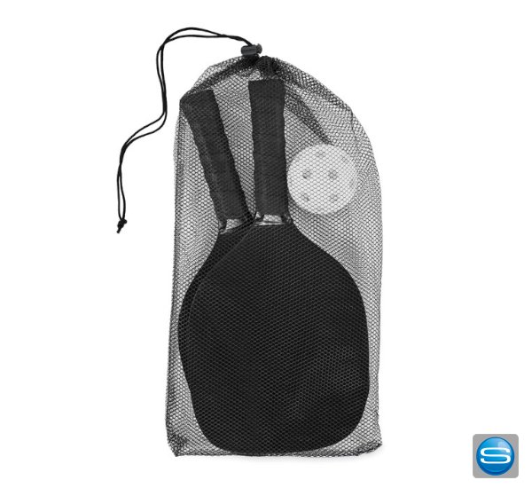 Mit seiner nachhaltigen Verpackung aus recyceltem RPET-Material und der Möglichkeit, die Schläger mit Ihrem Logo zu bedrucken, eignet sich das Set perfekt als sportliches Werbegeschenk. Es verbindet Aktivität, Nachhaltigkeit und Markenpräsenz auf sympathische Weise – ideal für Sommeraktionen, Teamevents oder Kundenpräsente.Produkteigenschaften