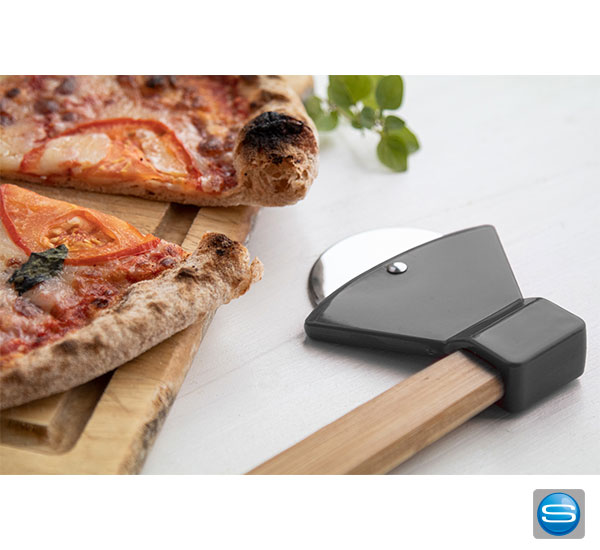 Pizzacutter mit Edelstahlschneidrad und stabilem Haltegriff aus Kunststoff. Die Lieferung des Pizzaschneiders erfolgt einzeln in einer Geschenkschachtel. Der in 4 verschiedenen Farben erhältliche Pizzaroller wird individuell auf der Mitte des Griffs mit Ihrem Logo bedruckt oder graviert.