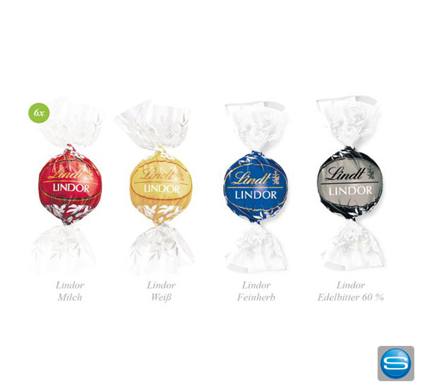 Diese Pralinen sind bunt gemischt in den Sorten Lindor-Vollmilch, Lindor-Weiß, Lindor-Haselnuss und Lindor-Edelbitter. Gegen Aufpreis Optional: Werbekartonage aus Graspapier, Naturkarton oder Coffee-Cup-Paper. Haltbarkeit: 6 Monate.