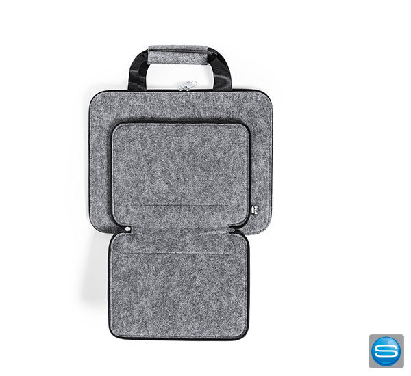 Die praktische bedruckbare Filztasche aus RPET Filz hat 2 verschiedene Fächer. Die Vortasche der RPET Filztasche lässt sich mittels Reißverschluss komplett öffnen. Wir bedrucken diese nachhaltige Filztasche mit Ihrem Logo.