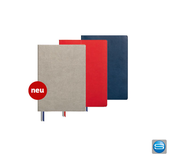 Notizbuch Office im modernen A5+ Format - nachhaltig produziert. Der Einband aus biobasiertem Softmaterial ist als flexible Douodecke gearbeitet. Inhalt kariertes Recyclingpapier. Details wie umlaufende Steppnaht, leichter Kantenüberstand und farblich passende Zeichenbänder komplettieren den chicen Look. Ihr Logo wird geprägt.