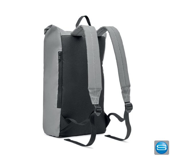 Reflektierender Rucksack mit Rollverschluss als Werbeartikel bedrucken