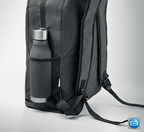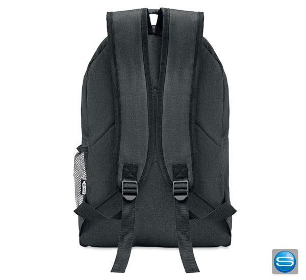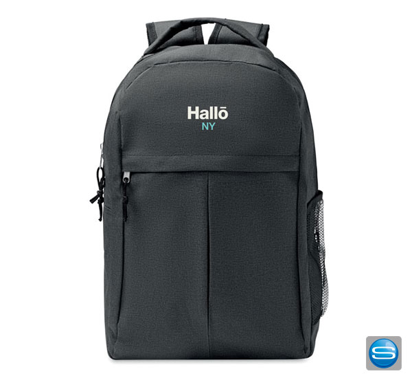 Der Rucksack aus 600D RPET 2tone Polyester hat eine Reißverschluss-Fronttasche und eine seitliche Netztasche. Die Tasche ist ideal für den täglichen Einsatz in der Schule, bei der Arbeit oder bei anderen Aktivitäten. In der seitlichen Netztasche können Sie eine Trinkflasche verstauen und in der vorderen Reißverschlusstasche können kleine persönliche Gegenstände aufbewahrt werden. Für den maximalen Tragekomfort lassen sich die Schultergurte in der Passform verstellen. Die maximale Traglast liegt bei 5kg. Sie können den Rucksack bei uns auch mit Ihrem Motiv bedrucken.