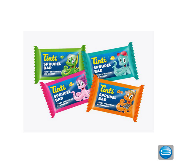 Tinti-Sprudelbad für Kids mit Werbebotschaft